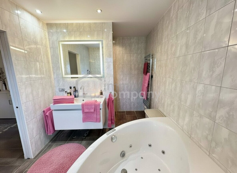 Fliesen, Erdwärme, Solarenergie, Fußbodenheizung, Einbauküche, Bad mit Fenster, Badewanne, Dusche, Kabel/Satelliten-TV, Garage, Parkplatz, Wasch/Trockenraum