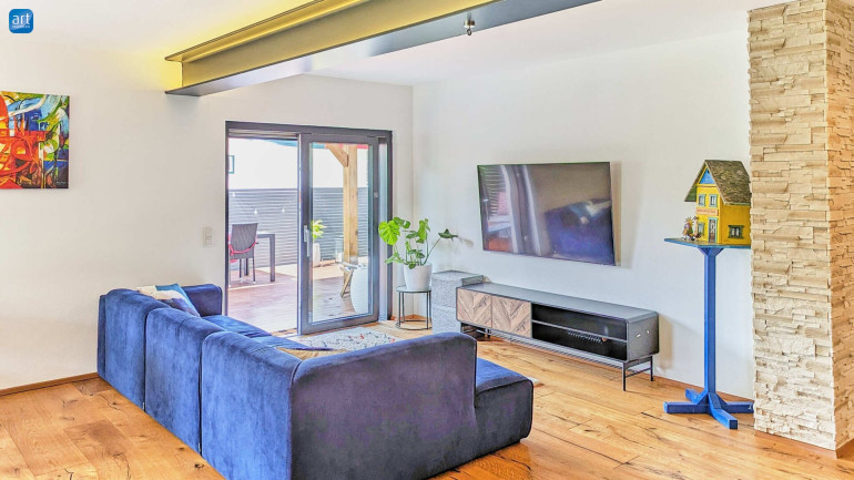 Auf ca. 180 m² Wohnfläche überzeugt das Haus mit offenem, lichtdurchflutetem Wohn-, Ess- und Küchenbereich samt hochwertiger Breitschopf-Küche (Siemens & Bora), vorbereitetem Kaminanschluss sowie direktem Zugang zur großzügigen Terrasse mit Tropenholzbelag und Whirlpool. Der rund 200 m² große, pflegeleichte Garten mit Granitsteinmauern und Gartenhaus bietet Privatsphäre und herrlichen Bergblick.
