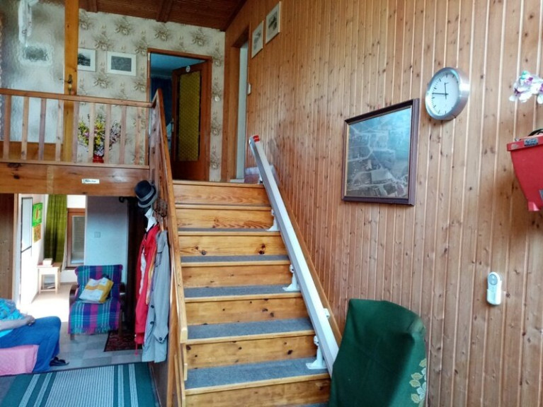 Zum Obergeschoß ist ein Treppenlift eingebaut. Damit ist auch für gehbehinderte Menschen ein problemloses Bewohnen möglich.