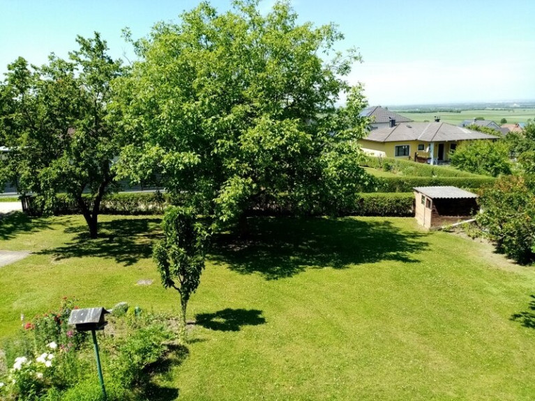 Rund ums Haus erwarten Sie zahlreiche Obstbäume, darunter ein Kirschenbaum, der im Sommer mit wunderschönen Herzkirschen begeistert.