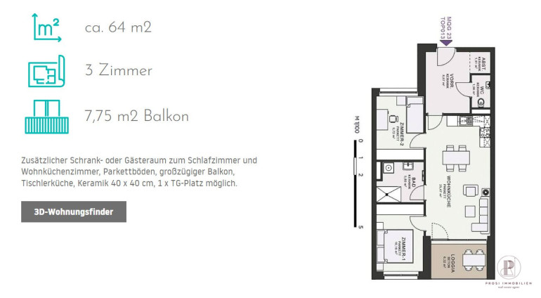 Miete: € 961,27 monatlich (inkl. BK, exkl. Strom, Fernwärme, Tiefgarage)