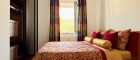 Das Schlafzimmer ist ruhig zum Schubertpark und zur Kirche hin ausgerichtet. Maßgefertigte Einbaumöbel, ein Bett mit edlem Samtbezug sowie ein raumhoher Einbauschrank mit Glas-Schiebetüren schaffen ein stilvolles Ambiente.