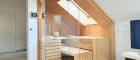 Die Wohnung befindet sich im 2. Stock einer charmanten, italienisch anmutenden Villa. Wohnzimmer, Küche und Essbereich bilden ein großzügiges, offenes Ensemble mit Ausrichtung zum See und direktem Zugang zum Balkon. Die hochwertige Vollholzküche mit edler Granit-Arbeitsplatte und Geräten von Miele bietet viel Platz zum Kochen und Genießen. An der Mini-Bar können Gäste gemütlich Platz nehmen, während gemeinsam gekocht, geplaudert und ein gutes Glas Wein getrunken wird. Der großzügige Essbereich bietet ausreichend Platz für Familie und Freunde.