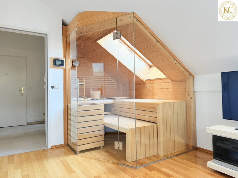 Ein weiteres Zimmer bietet flexible Nutzungsmöglichkeiten als Kinder-, Gästezimmer oder Homeoffice. Als besonderes Highlight befindet sich hier auch eine Sauna.