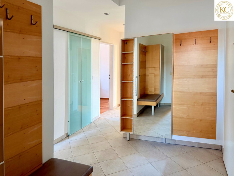 Der Vorraum ist mit großzügigen Garderobenschränken ausgestattet. Eine Waschmaschine findet im separaten WC ihren praktischen Platz.