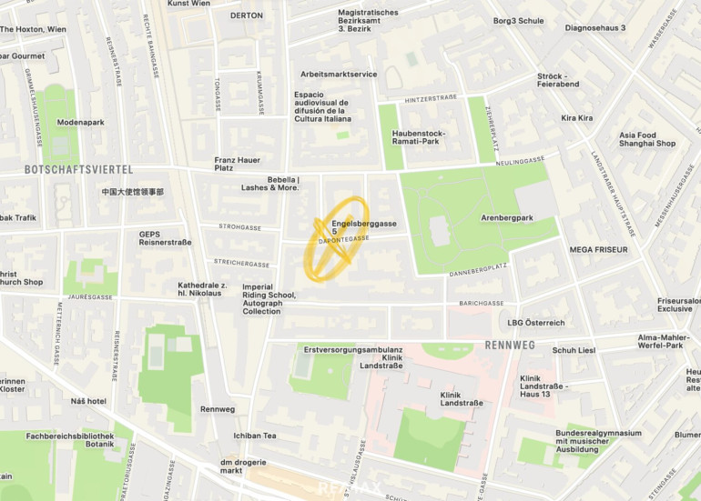 Diese südlich ausgerichtete Wohnung im 3. Bezirk von Wien besticht durch ihre ideale Lage nahe dem grünen Arenbergpark. In unmittelbarer Nähe finden Sie Ärzte, Apotheken, Kliniken, Schule, Kindergarten, Universität, Supermärkte, Bäckereien, Einkaufszentren sowie vielfältige öffentliche Verkehrsmittel wie Bus, U-Bahn, Straßenbahn und Bahnhof. Alle wichtigen Einrichtungen des täglichen Lebens sind bequem erreichbar.