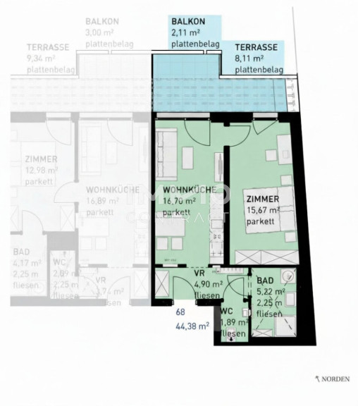 - Jede Wohnung mit privater Freifläche (Loggia, Balkon, Terrasse, Eigengarten)