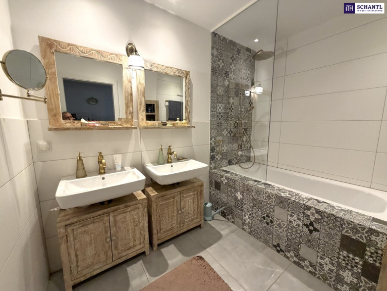 Auf rund 106,5 m² Wohnfläche entfaltet sich ein durchdachtes Raumkonzept: Zwei großzügige Schlafzimmer mit ca. 13 m² und 21 m², ein stilvolles Badezimmer mit Doppelwaschbecken und Badewanne, ein praktischer Abstellraum, sowie Toiletten auf beiden Ebenen schaffen eine perfekte Balance aus Komfort und Funktionalität.