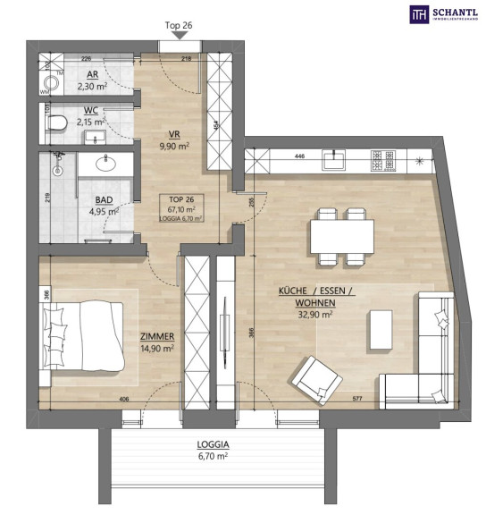 Top 26 – 2-Zimmer-Wohnung mit 6,7 m² großer Loggia und bester Aussicht!