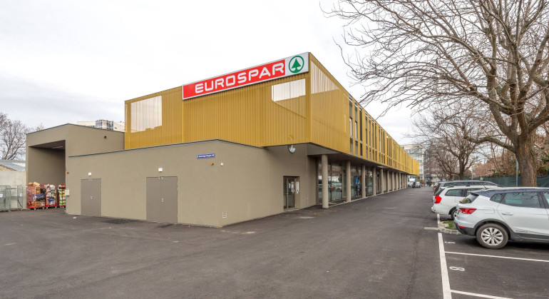 im Haus: Spar-Supermarkt für den täglichen Bedarf