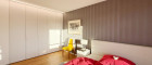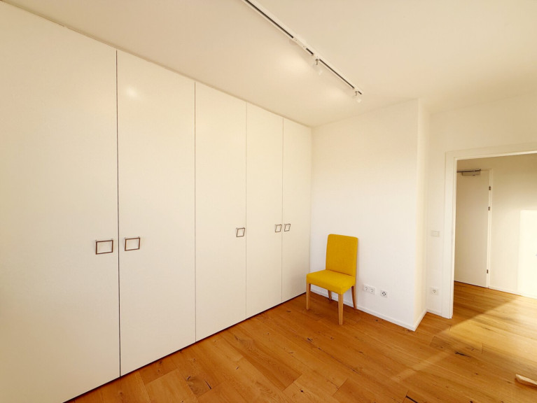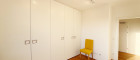 Das Schlafzimmer und das Kinderzimmer (oder Büro) verfügen durch weiße, schlichte Einbauschränke über ausreichend Stauraum.