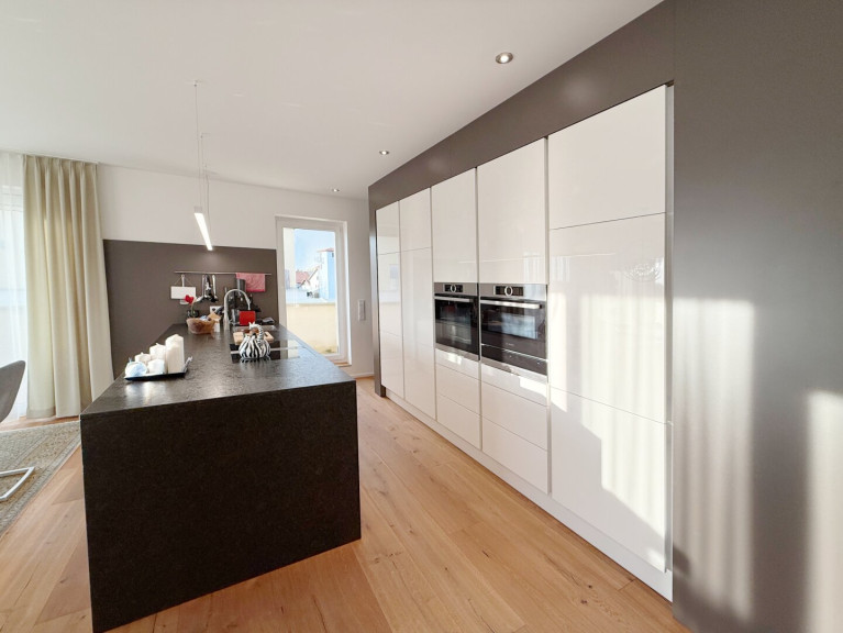 Die moderne und doch zeitlose Küche lässt keine Wünsche offen. Mit Geräten der Firma Bosch und Bora ist sie optisch und technisch auf dem neuesten Stand.