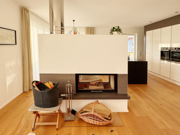 - Kaminofen mit Sichtfenstern sowohl Richtung Ess- als auch Richtung Wohnbereich