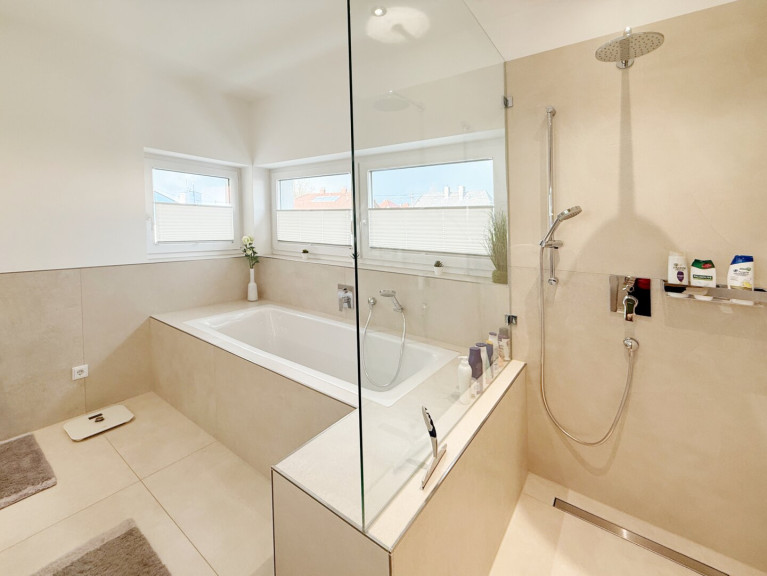 - Badezimmer mit Wanne und Dusche