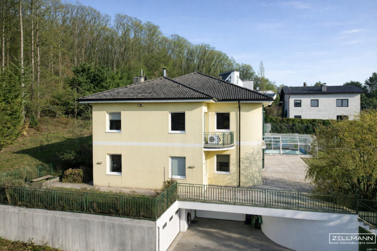 Repräsentativer Lebensstil und energetische Vorsorge schließen einander nicht aus – sie ergänzen sich in dieser außergewöhnlichen Villa in erhöhter Lage am Königswinkelberg in Gablitz. Mit freiem Blick auf den Wienerwald und einem direkt angrenzenden, rund 8.000 m² großen Mischwald, welcher zusätzlich gesondert erworben werden kann, bietet diese Liegenschaft eine seltene Kombination aus Privatsphäre, Naturverbundenheit und nachhaltigem Nutzungspotenzial.