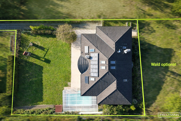 Villa mit Pool · 1.567 m² Grundstück · 8.000 m² Mischwald optional · Energieunabhängiges Potenzial