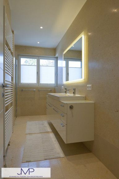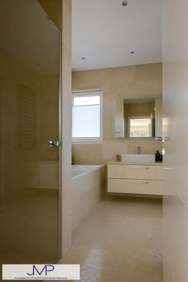 - Eleganter Naturstein (französischer Marmor) in Keller, Vorraum und Bädern