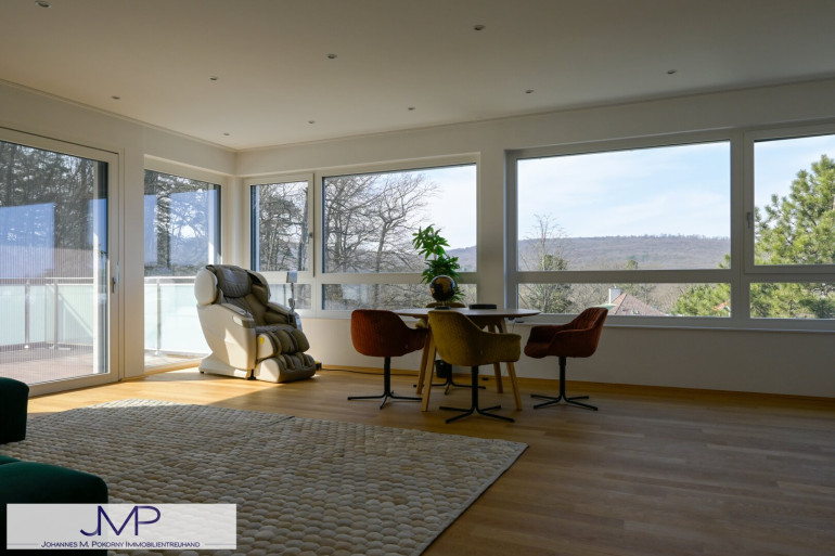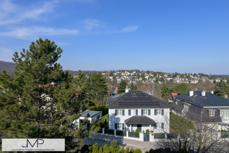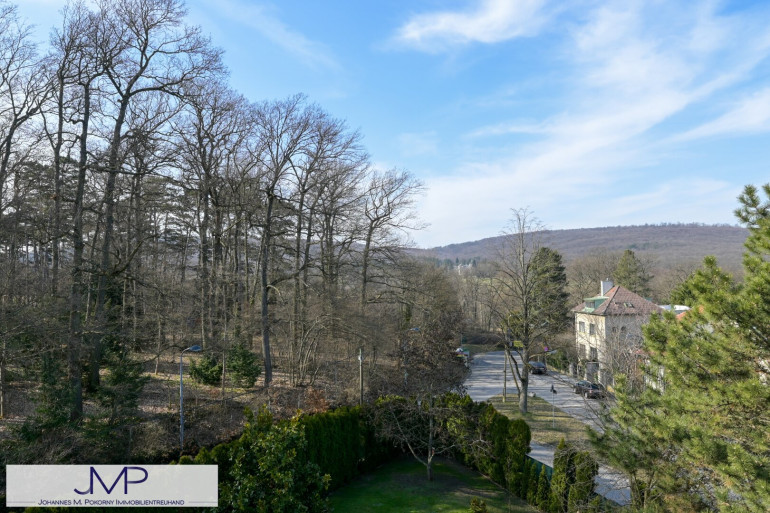 Blick reicht dabei über die Villen und Einfamilienhäuser der Umgebung, bis hin zur historischen Hermesvilla. Das nur wenige Gehminuten entfernte Lainzer Tor, öffnet dabei den Zugang zum ehemaligen kaiserlichen Jagdrevier und heutigen Naturschutzgebiet im Wienerwald.