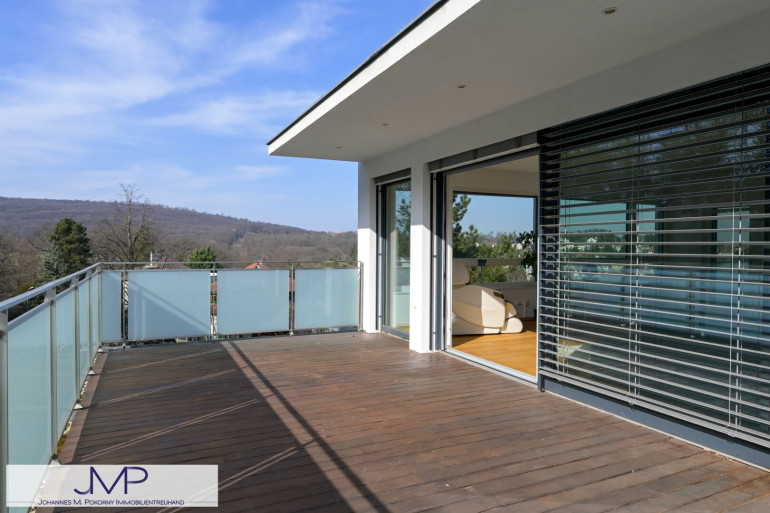 Die geräumige Architekten-Villa liegt in einer absoluten Ruhelage, unmittelbar angrenzend an den Wald des Lainzer Tiergartens. Der