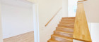 Stiegenanlage: Tritt- und Setzstufen aus Holz, Kellerstiege mit versiegelter Betonoberfläche, jeweils mit Holzhandlauf