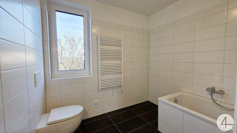 Badezimmer mit Badewanne, Waschbecken mit Einhandmischer und Badezimmerheizkörper