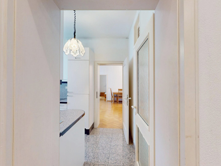 Die Wohnung befindet sich in der zweiten (hinteren) Stiege des Wohnhauses, alle Zimmer sind in den Innenhof ausgerichtet. Sie haben also nicht nur den Vorteil einer zentralen Wohnlage, sondern sind auch noch abgeschirmt gegen die Geräuschkulisse der Außenwelt!