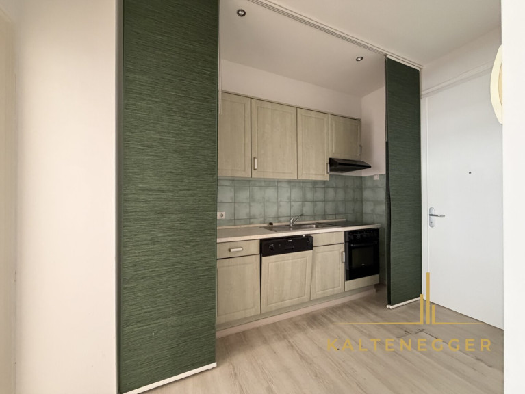 - Vorraum mit integrierter Küche und Gastherme (Laminatboden)