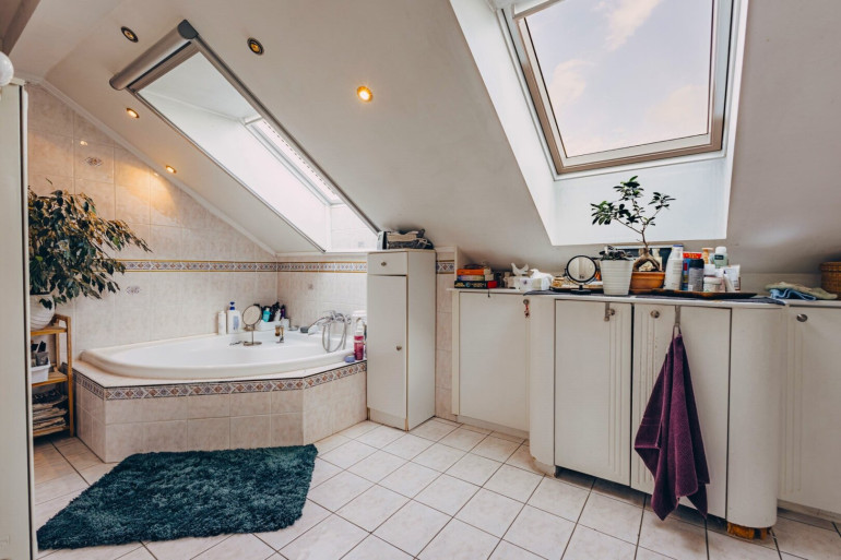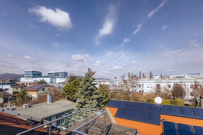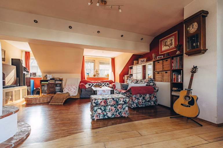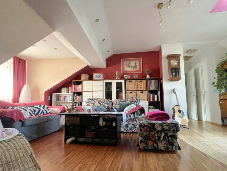 Die rund 102 m² große Dachgeschosswohnung befindet sich in einem gepflegten Altbau, wobei die Dachgeschossfläche als moderner Ausbau/Zubau mit besonderem architektonischen Charakter errichtet wurde. Dadurch verbindet die Wohnung klassischen Altbauflair mit zeitgemäßem Wohnkomfort und moderner Technik, einschließlich Solarenergie.