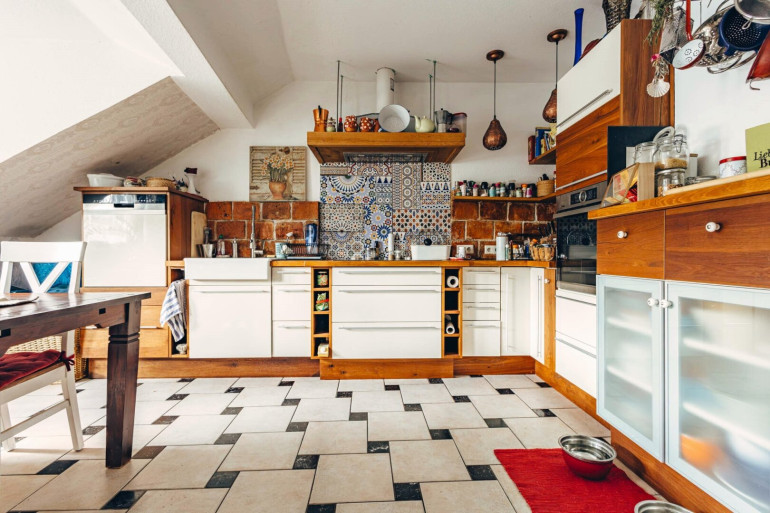 Parkett, Fliesen, Solarenergie, Kamin, Zentralheizung, Einbauküche, Nordbalkon, Dusche, Bad mit Fenster, Badewanne