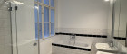 The kitchen is modern and well equipped. There are two bathrooms in the apartment. One of them is connected to a bedroom and has a shower and toilet. The second bathroom has a bathtub, a shower and a window. In addition, there are two separate toilets with washbasins. A separate storage or utility room provides extra space for everyday use.