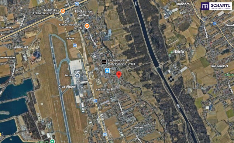 Die Liegenschaft befindet sich in einer der begehrtesten Wohn- und Geschäftslagen von Feldkirchen bei Graz. Der Standort zeichnet sich durch eine ideale Kombination aus ruhigem Wohnumfeld, hervorragender Erreichbarkeit und optimaler Infrastrukturversorgung aus. Eingebettet in ein gepflegtes Wohngebiet profitiert die Immobilie von einer angenehmen Nachbarschaft, großzügigen Grünflächen und der Nähe zu sämtlichen Einrichtungen des täglichen Bedarfs. Einkaufsmöglichkeiten, Schulen, Kinderbetreuung, medizinische Versorgung sowie gastronomische Angebote sind in wenigen Minuten erreichbar. Die Verkehrsanbindung ist ausgezeichnet: Über regionale Hauptverkehrswege sind sowohl die Grazer Innenstadt als auch der Flughafen Graz-Thalerhof in kurzer Zeit erreichbar. Öffentliche Verkehrsmittel befinden sich ebenfalls in bequemer Nähe und sorgen für eine sehr gute Anbindung an das Stadtgebiet und das umliegende Umland. Durch die zentrale und dennoch ruhige Lage bietet der Standort sowohl für den Praxisbetrieb als auch für Wohnzwecke einen äußerst attraktiven Rahmen. Das Umfeld ist geprägt von stetiger Entwicklung, moderner Wohnbebauung und einer nachhaltigen Nachfrage nach Wohn- und Gewerbeflächen – ideale Voraussetzungen für eine langfristige und wertstabile Immobilieninvestition.