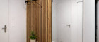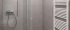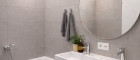 Das Badezimmer wurde ebenfalls hochwertig ausgeführt und verfügt über eine maßgefertigte, großzügige Duschkabine sowie ein Doppelwaschbecken mit edlem Unterschrank aus echtem Holz, was dem Raum eine besonders hochwertige Atmosphäre verleiht.