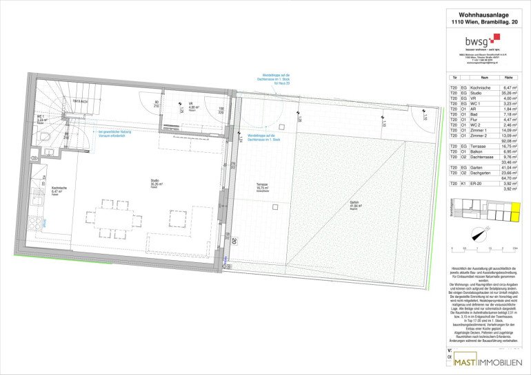 Das Stadthaus befindet sich im ruhigen Straßentrakt und verfügt über 92,08 m² Wohnfläche + eine 41,67 m² große Terrasse/Garten + ein 6,95 m² großer Balkon + eine 33,15 m² große Dachterrasse.