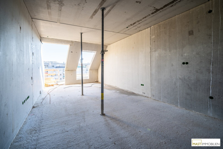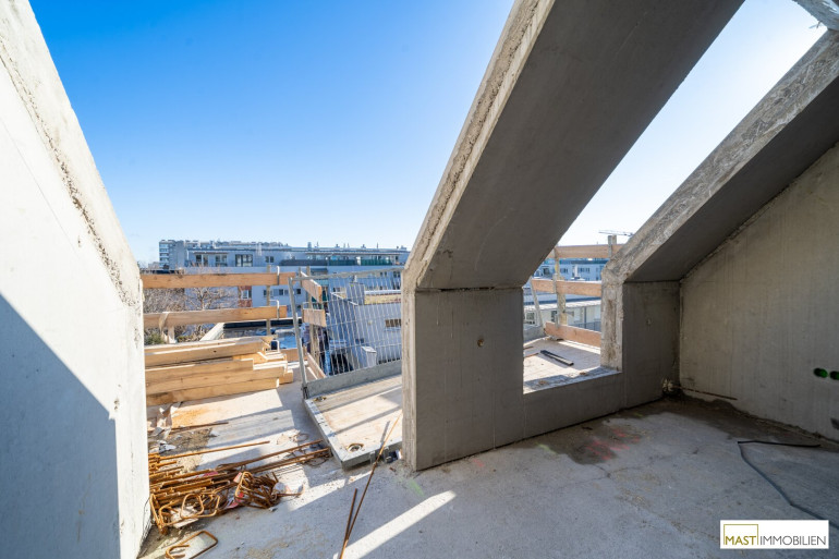 Die Wohnung befindet sich im 4. Liftstock (1. Dachgeschoss) und verfĂĽgt ĂĽber 50,95 m² Wohnfläche + eine ca. 8,17 m² groĂźe Freifläche.Â