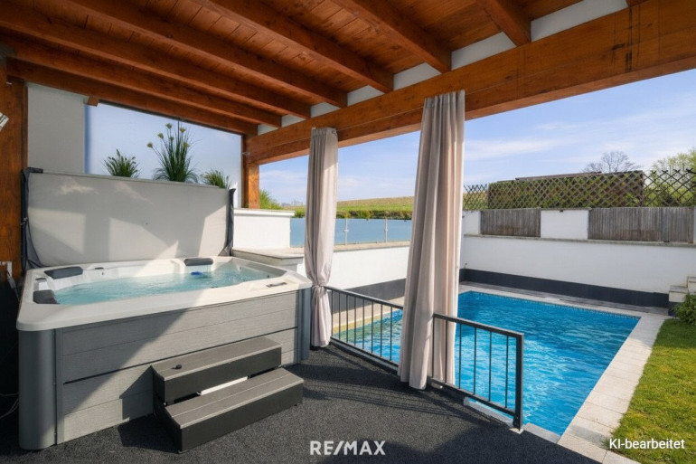 Ein besonderes Highlight dieser Immobilie ist der private Swimmingpool im Garten – perfekt für heiße Sommertage, entspannte Nachmittage oder gesellige Grillabende mit Familie und Freunden.