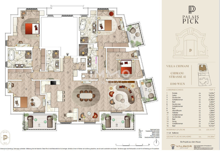 At the end of the park-like property, Villa Chimani is taking shape: a modern new-build residence featuring only eight exclusive apartments starting from approx. 110 m². Each unit offers generous outdoor spaces, well-designed layouts, and refined views of the historic palais.