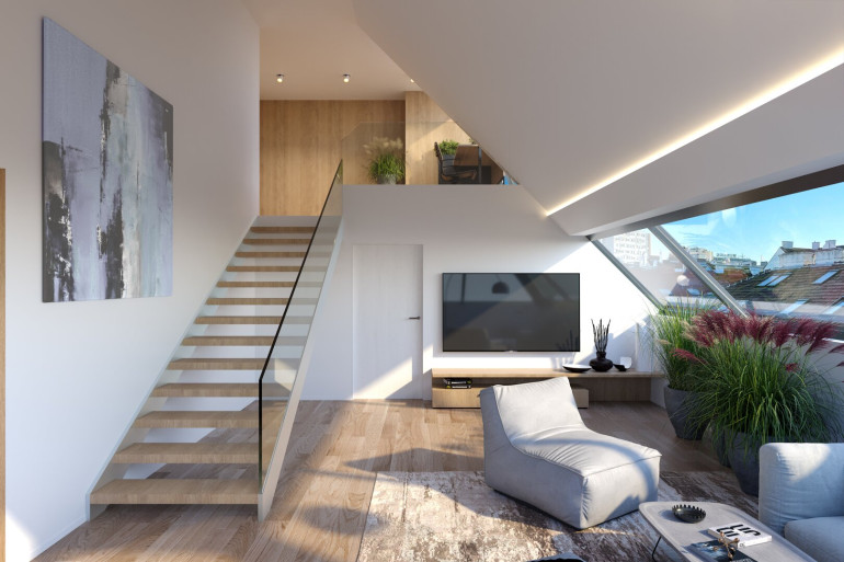 Zum Verkauf gelangt ein baubewilligter Rohdachboden für ein Luxuspenthouse mit Dachterasse in guter Lage des 5. Wiener Gemeindebezirkes. Die Wohnfläche der zu errichtenden Wohnung beträgt ca. 318 m² aufgeteilt auf 2 Ebenen sowie einer Dachterrassenebene. Die Freiflächen in Form von Balkonen, Terrassen und einer Dachterrasse weisen eine Gesamtfläche von ca. 73 m² auf. Der Rohdachboden befindet sich in einem 5 geschoßigen wiedererrichteten Gebäude, welches im Zuge des Dachgeschoßausbaues ebenfalls saniert werden soll. Als Heizsystem für das Penthouse ist eine Luftwärmepumpe geplant. Alle Ebenen sind barrierefrei mittels Personenaufzug erreichbar.
