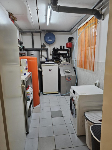 Fliesen, Parkettboden, Erdwärme, Fußbodenheizung, Heizofen, Zentralheizung, Einbauküche, Bad mit Fenster, Dusche, Carport, Garage, Tiefgarage, Sauna, Wasch/Trockenraum