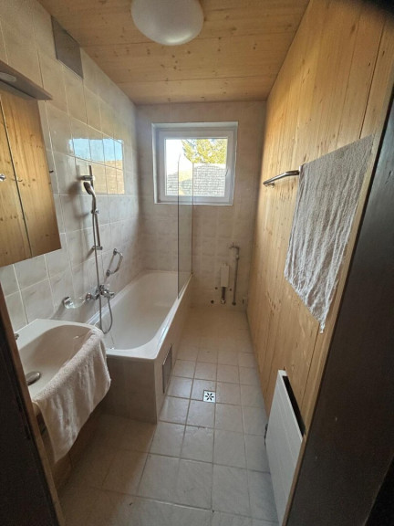 Die Einbauküche ist funktional und bietet Ihnen genügend Platz, um Ihre kulinarischen Kreationen zu verwirklichen. Die zwei Badezimmer mit Fenstern und die zwei WCs sorgen für zusätzlichen Komfort und Privatsphäre, was besonders in einem Familienhaushalt von großer Bedeutung ist.
