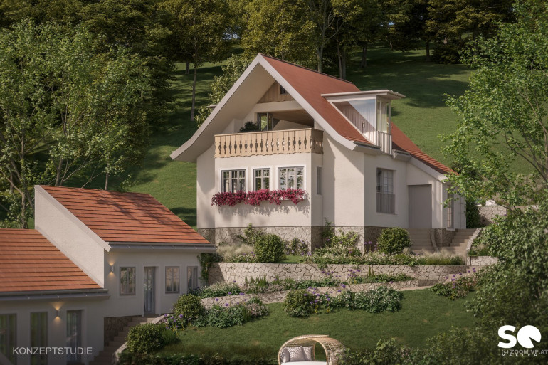 - Weitere Räume: Windfang, Speis, Garderobe, Bad, Stiegenhaus