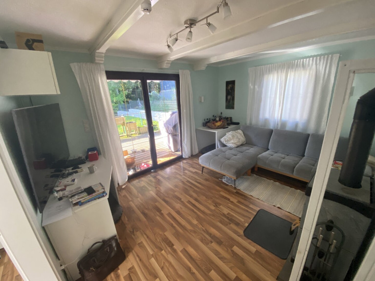 Die Liegenschaft mit Zweitwohnsitzwidmung ist mit einem 2-geschossigen (Gartengeschoß und Erdgeschoß) Wohngebäude aus 1971 mit 5 Zimmer, 2 Bädern, WC und 2 Terrassen sowie einer Garage bebaut.