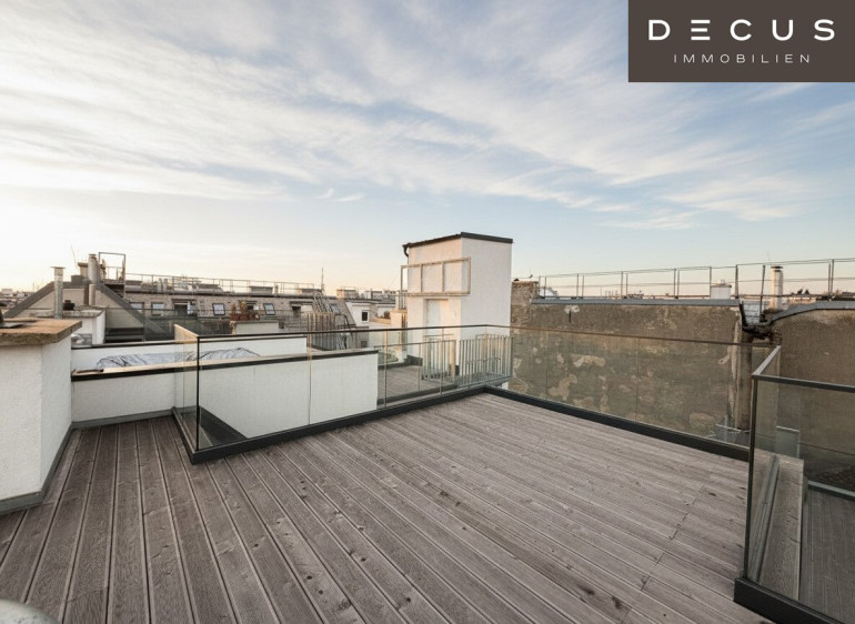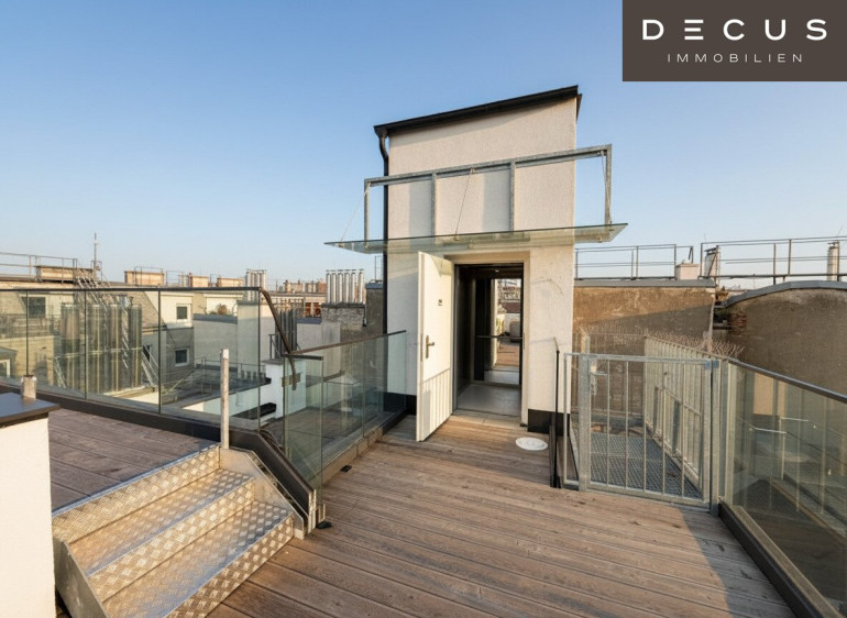 Ein absolutes Ausnahme-Highlight ist die spektakuläre Dachterrasse mit atemberaubendem 360-Grad-Panoramablick über Wien – vom Karmeliterviertel bis zum Prater und weit über die Skyline des 2. Bezirks hinaus. Die weitläufigen Terrassenflächen eröffnen nicht nur beeindruckende Ausblicke, sondern auch ein außergewöhnlich geschütztes Wohngefühl mit viel Privatsphäre über den Dächern der Stadt.