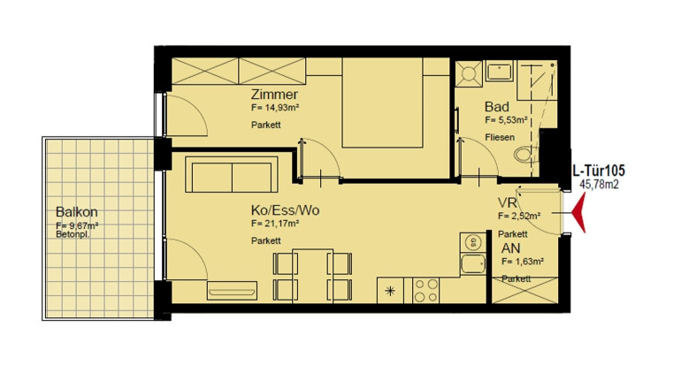 | Nutzfläche: | 45,78 m² |