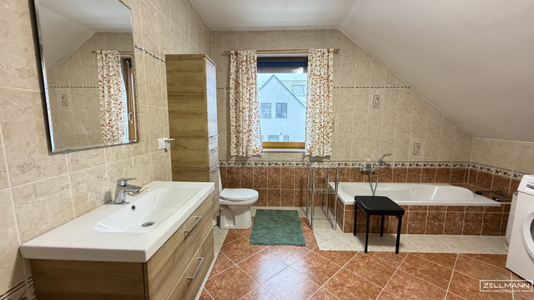 Ein Balkon ergänzt diese Ebene und schafft eine zusätzliche Freifläche mit Blick ins ruhige Wohnumfeld. Zwei Badezimmer sowie mehrere WCs gewährleisten einen komfortablen Ablauf im Alltag und unterstreichen die Familienfreundlichkeit des Hauses.