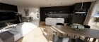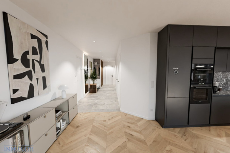 Der großzügige Wohn-/Essbereich mit offener Küche bildet das Herzstück der Wohnung und schafft ein helles, offenes Wohngefühl mit direktem Zugang zur Terrasse.