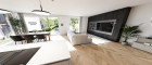 Französisches Fischgrät-Eichenparkett sorgt für zeitlose Eleganz. Hochwertige Holz-Alu-Fenster (3-fach verglast) garantieren optimale Energieeffizienz und lichtdurchflutete Räume.