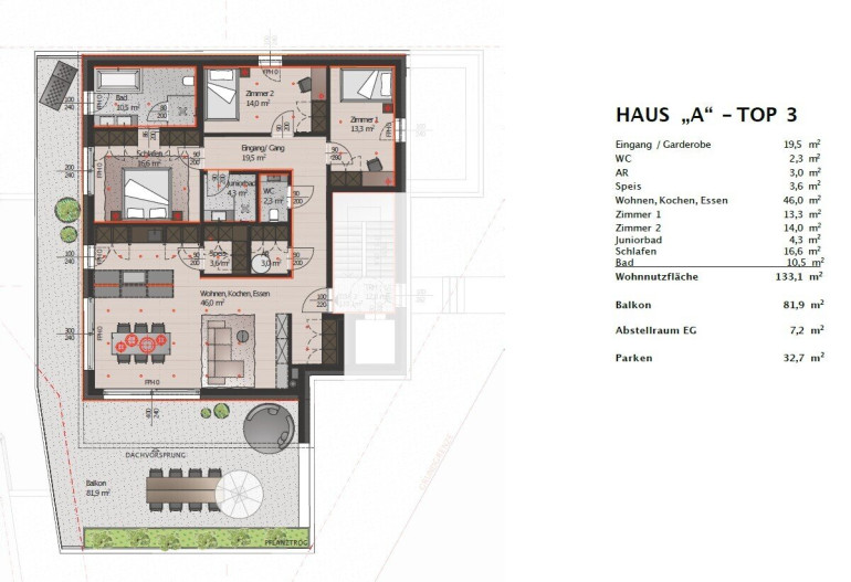 Separates WC, Abstellraum (AR) und zusätzliche Speis bieten hohen Alltagskomfort und optimale Organisation.