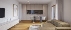 Hochwertige Bodenbeläge: Eichenparkett in Wohnräumen, Feinsteinzeug in Bad/WC