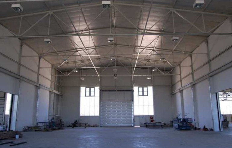 Konstruktion: Stahlkonstruktion mit Thermopaneel-Fassade und -Dach, Satteldach, Industrieboden aus Stahlbeton.