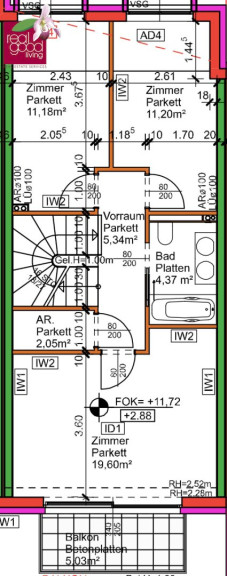 - Zimmer: ca. 25,66 m² mit Zugang zum Balkon